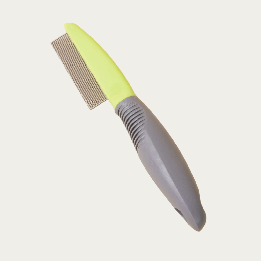 This handheld soft grip flea comb fits comfortably in your hand while combing your pets hair/fur. This comb has short close ridges that make it easy to remove anything small that sits in or on your pet's skin or hair/fur. It is perfect for pets of all ages and sizes.