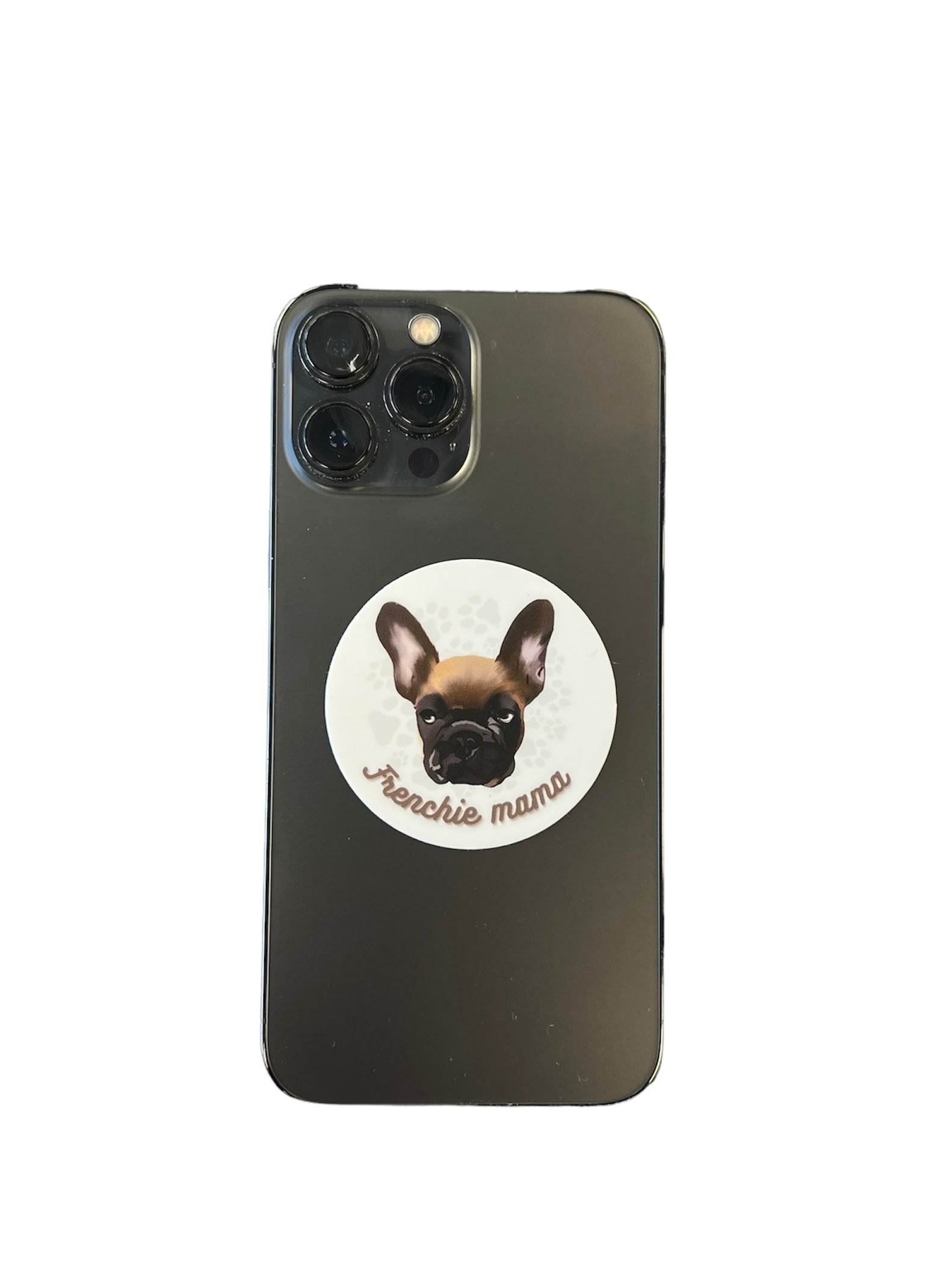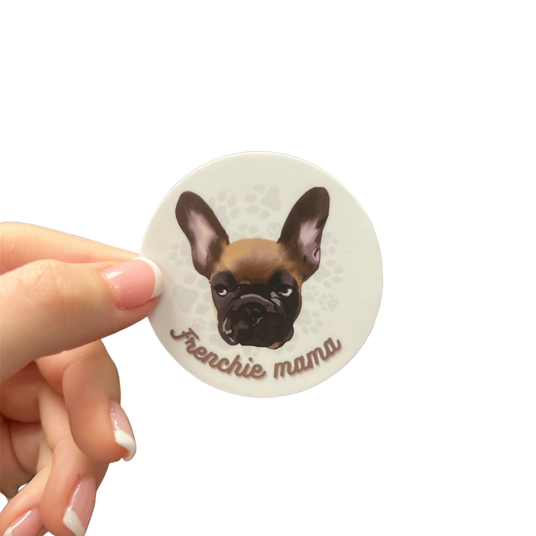 This ones for the french bulldogs! 2.25" x 2.25" small sticker perfect for your tumbler, phone, computer, and more! Waterproof and hand-drawn design. Flaunt your sticker with pride, frenchie mama!