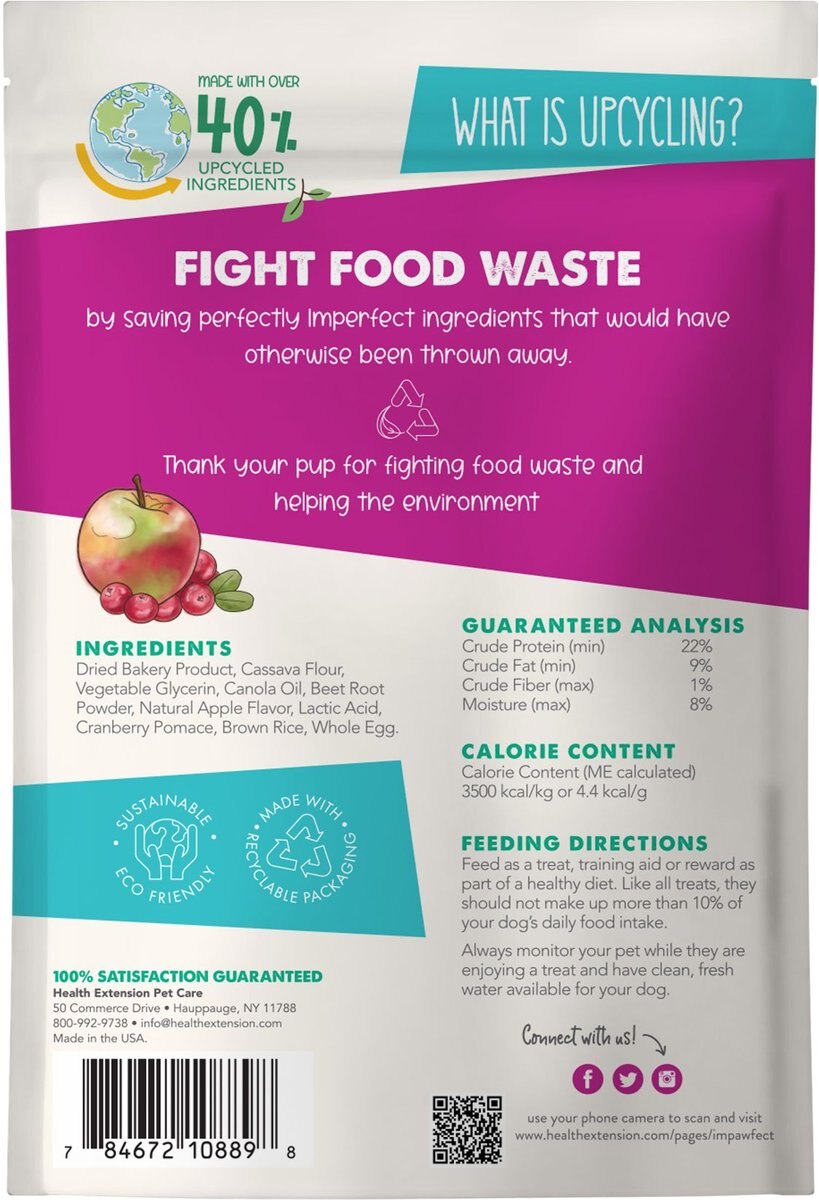 Health Extension Impawfect Cranberry & Apple Flavored Soft & Chewy Training Dog Treats, 4-oz bag