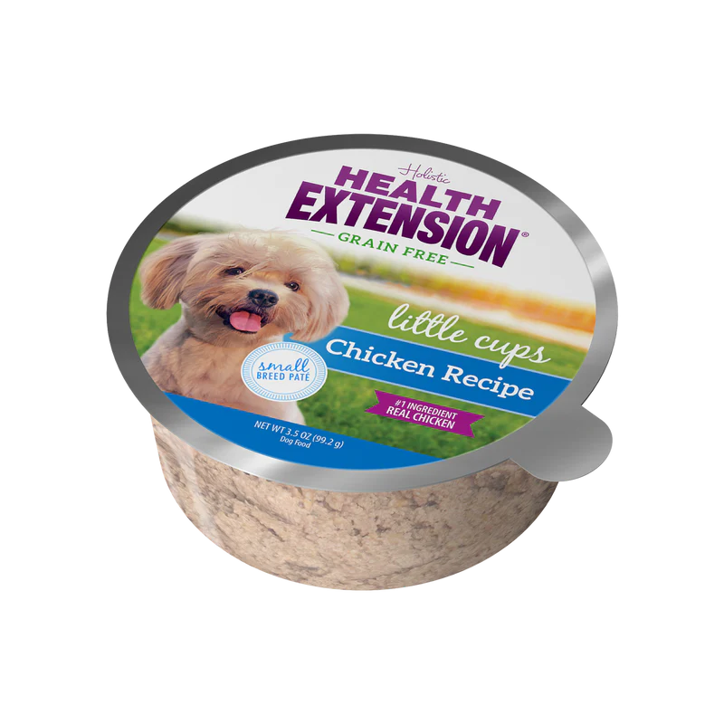 Health Extension Little Cups Chicken for Small Breeds is a easy and convenient way to feed your small breed puppy a fresh meal every day and is packed with all the nutrition your puppy needs to grow healthy and happy into their adult years.