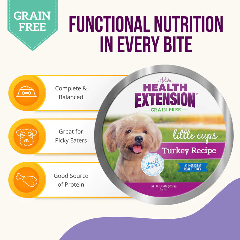 Health Extension Little Cups Turkey for Puppies is a easy and convenient way to feed your puppy fresh meals every day and is packed with all the nutrition your puppy needs to grow healthy and happy into their adult years.