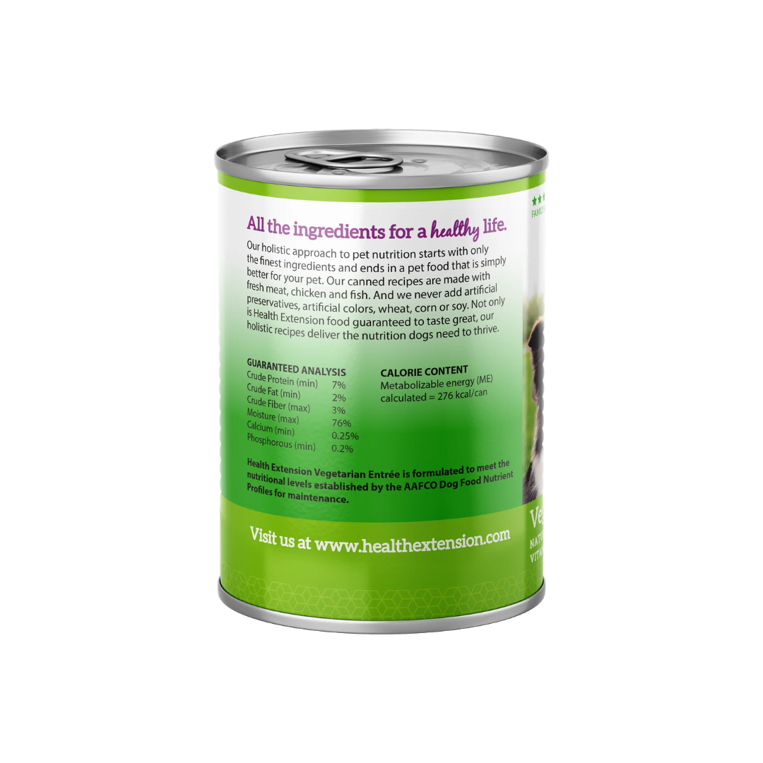 Health Extension Vegetarian Entrée Canned Dog Food provides a wholesome, complete, and balanced maintenance diet for your dog with no meat or animal proteins. Specially formulated for dogs with food sensitivities.