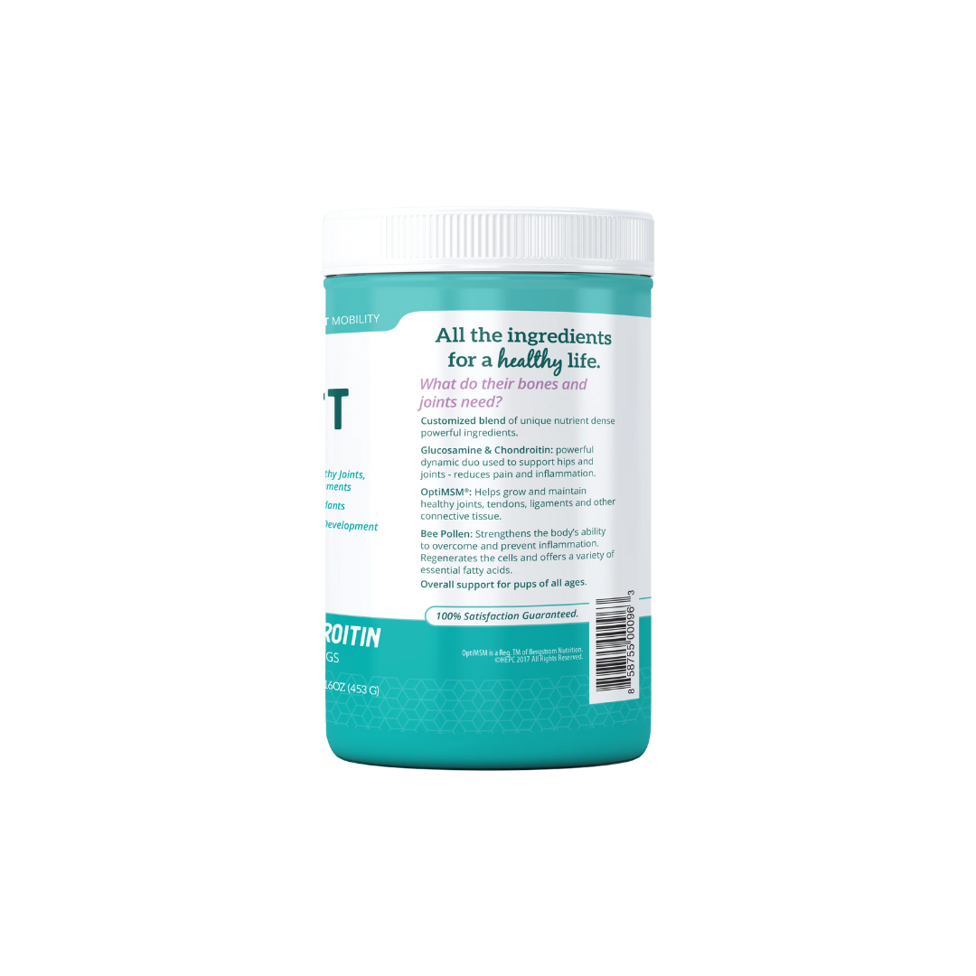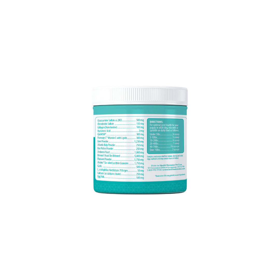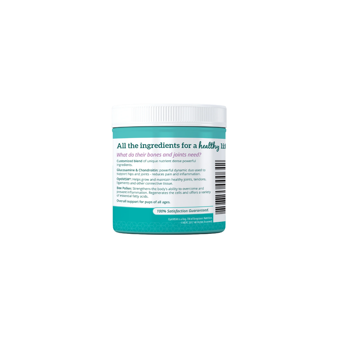 All-natural joint support for dogs. Relieves stiff & sore joints, encourages growth and repair of tendons, cartilage and tissue and promotes collagen formation.