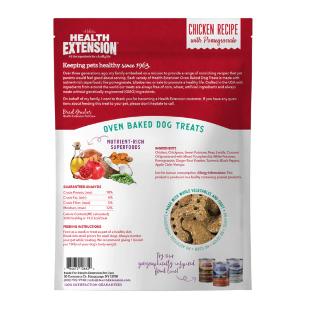 Oven baked and grain free treats are a hit! Health Extension Oven Baked Chicken and Pomegranate Dog Treats are irresistible. Full of quality ingredients and nutrient rich superfoods your furry friend will be delighted to get their paws on these cute bone shaped treats.