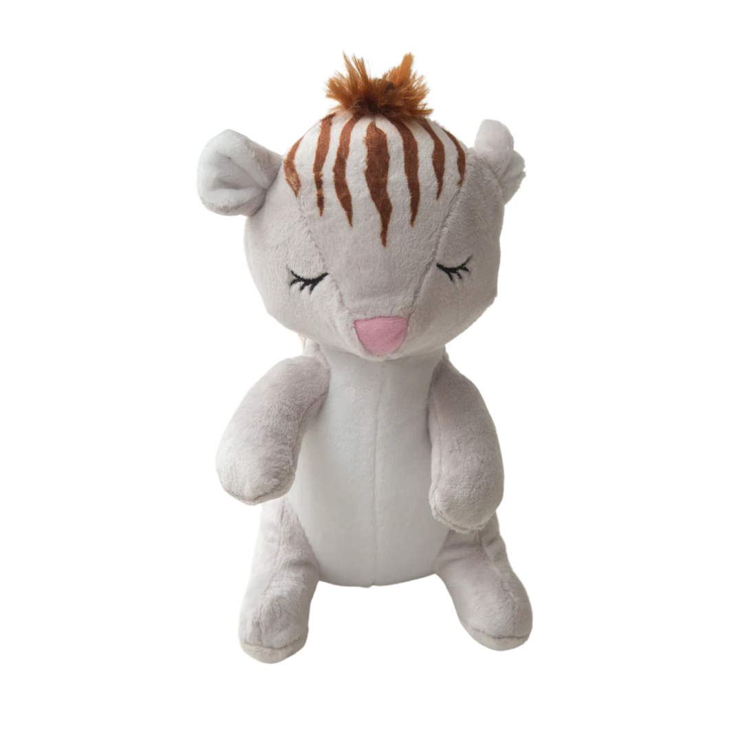 Shea the Squirrel is is here for some fall fun. Your pup will love playing with her fun tail. Toy contains crinkle & squeaker. This toy is made from recycled water bottles.