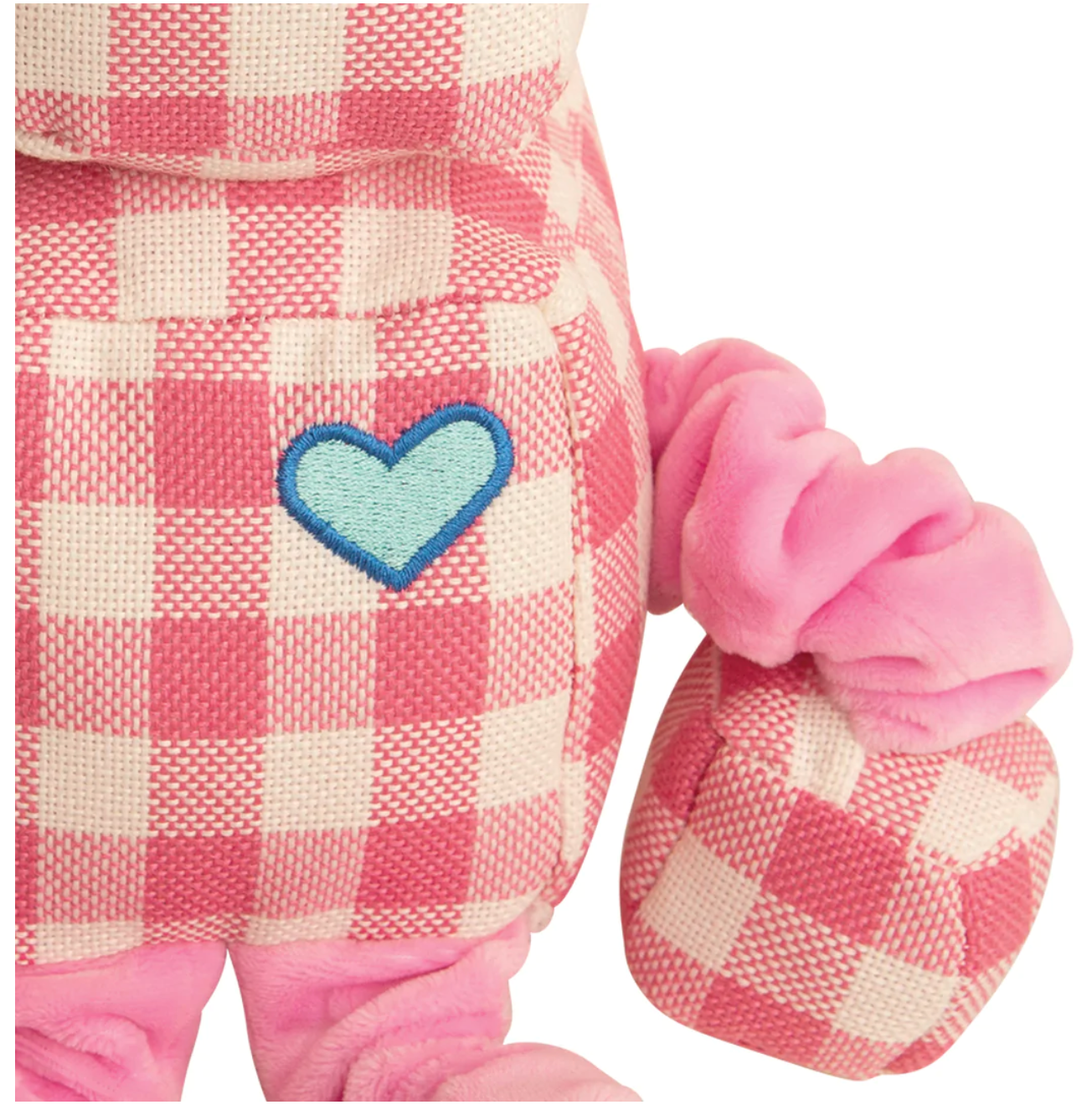 Rosie is ready to snuggle, cuddle, and play all day. This sweet little robot toy is made out of a durable gingham check linen material and has super fun squeakers and crinkly filling inside. Her soft bungee arms and legs are floppy and fun for your pup to wave around.